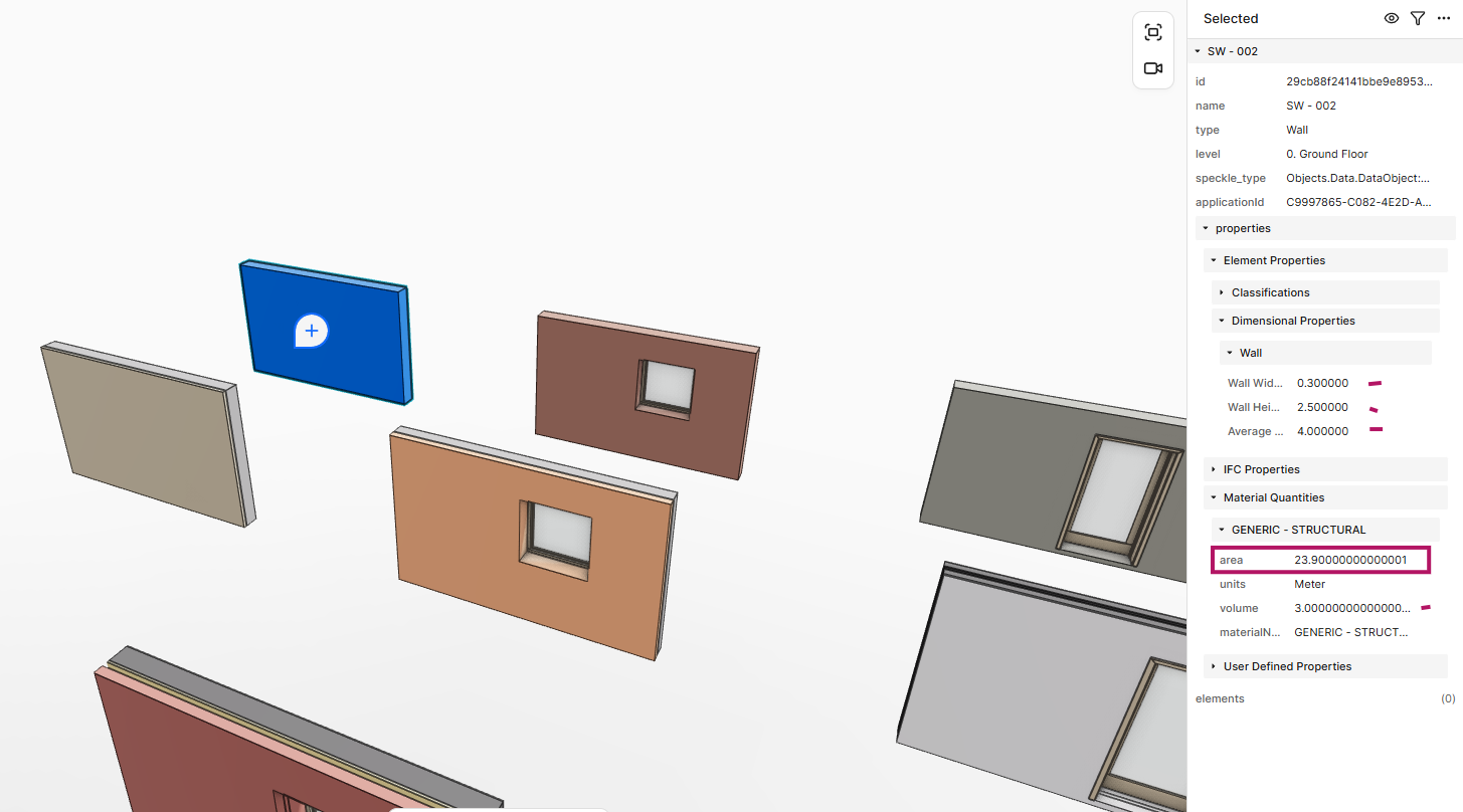 I have been using Speckle V2 ArchiCAD connector for model sharing and cost calculation analisis for a while now. To quality check the data and my workflow, I created a test model where I know exactly what the areas should be based on fix dimensions. *In this example a wall´s face is 4m x 2.5m = 10m"2 -