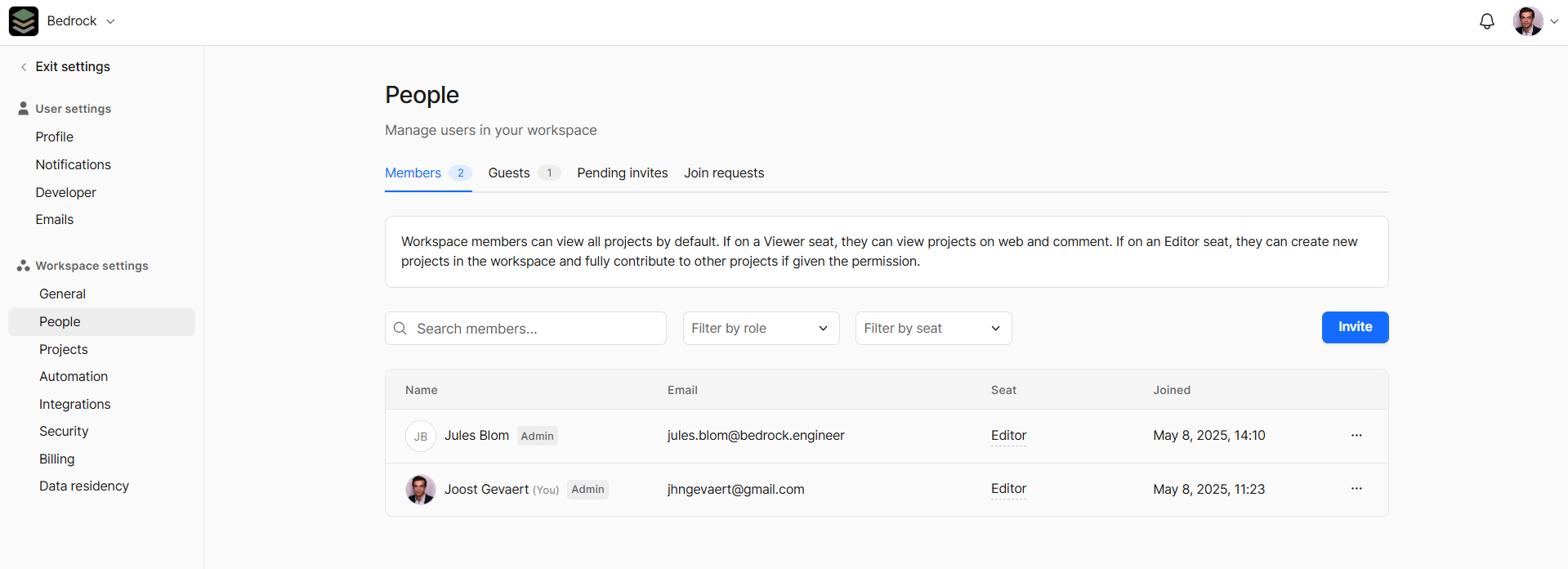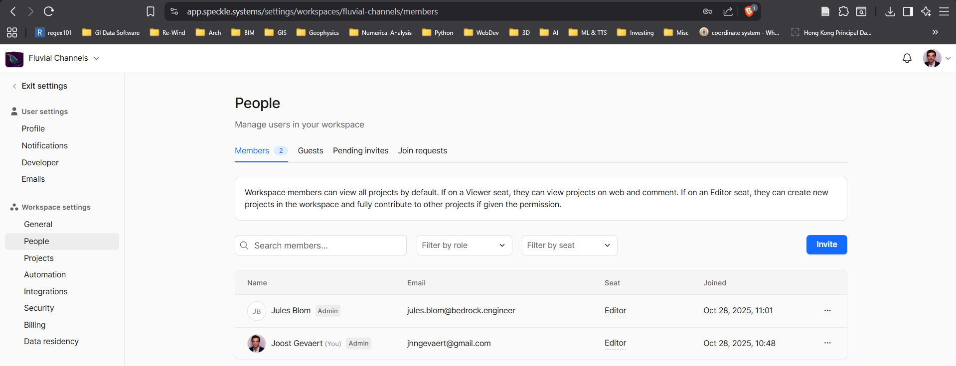 Are you saying that Speckle is filtering my email address? That’s not the case either, because my colleage Jules Blom does have an account with his email jules.blom@bedrock.engineer.