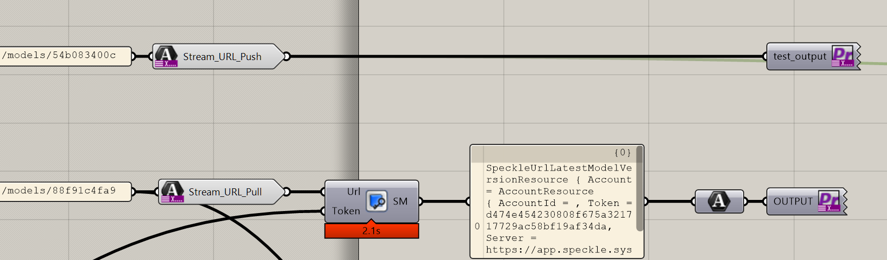 Hi @clrkng I would also like to report that the “Speckle Model URL” component does not seem to be working with Rhino.Compute. I tried running this short GH script with Rhino.Compute and I get a solution exception error from the “Speckle Model URL” component.