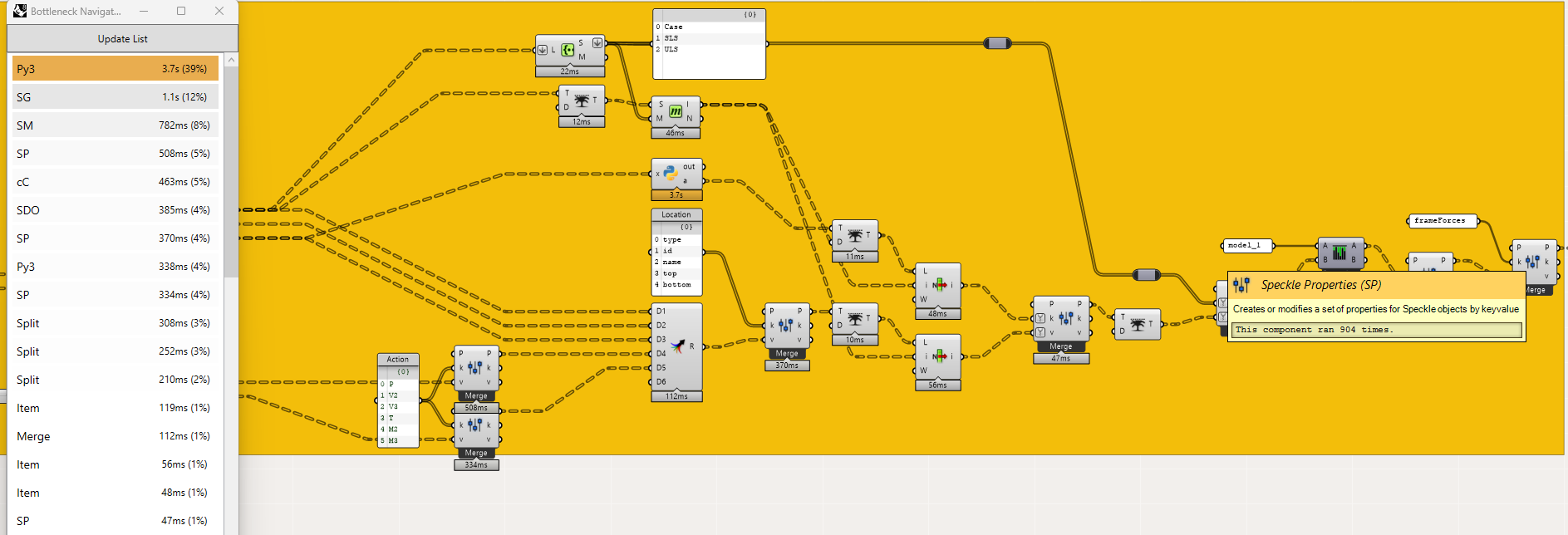 Interesting that the passthrough component was much more performant! When I tested the Create Speckle Properties on your dataset, I was getting solve times of about 1s, which is still double the passthrough component’s time.