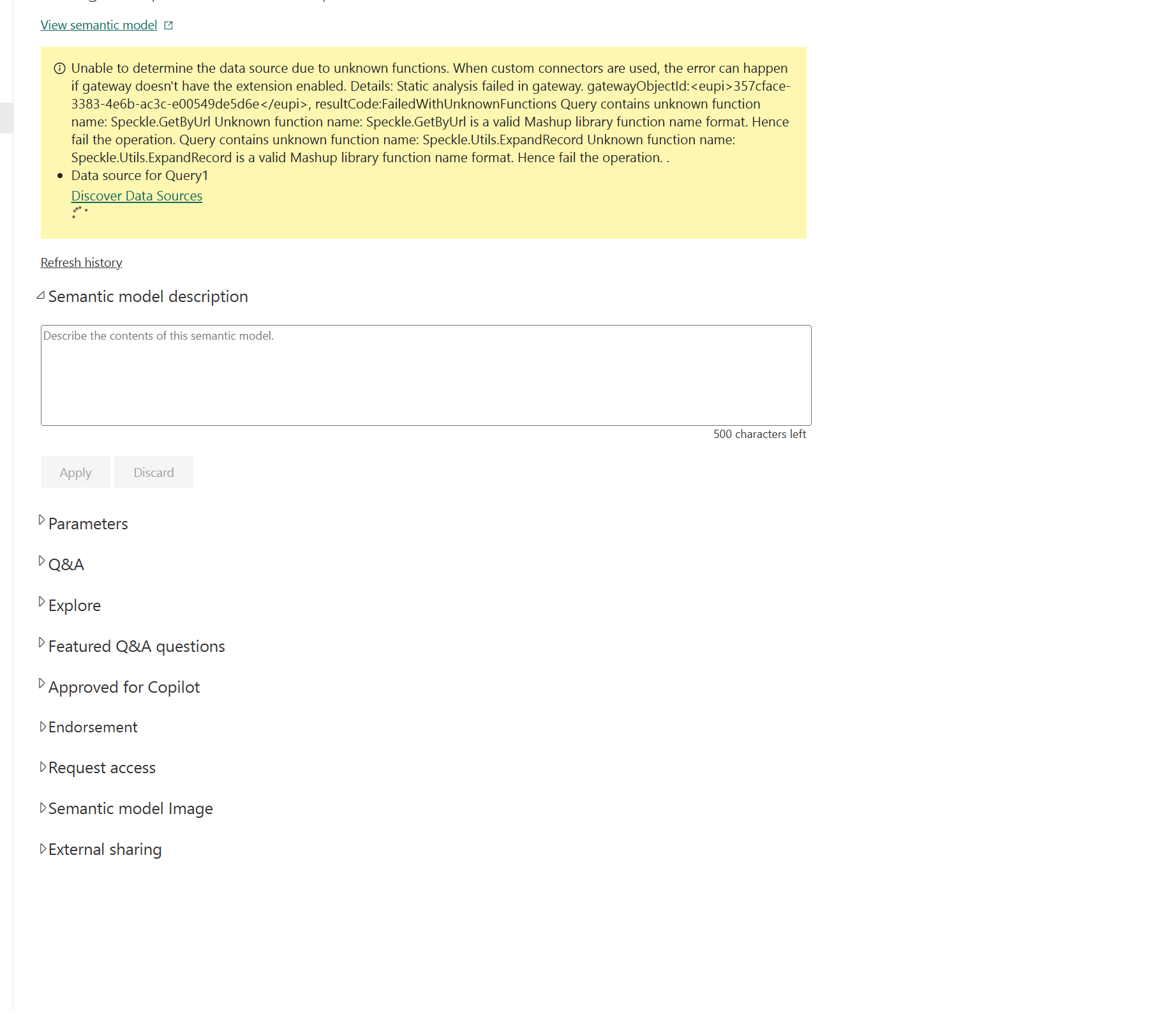 You’re seeing this because Power BI Service cannot find the custom M functions used inside your model. The message
