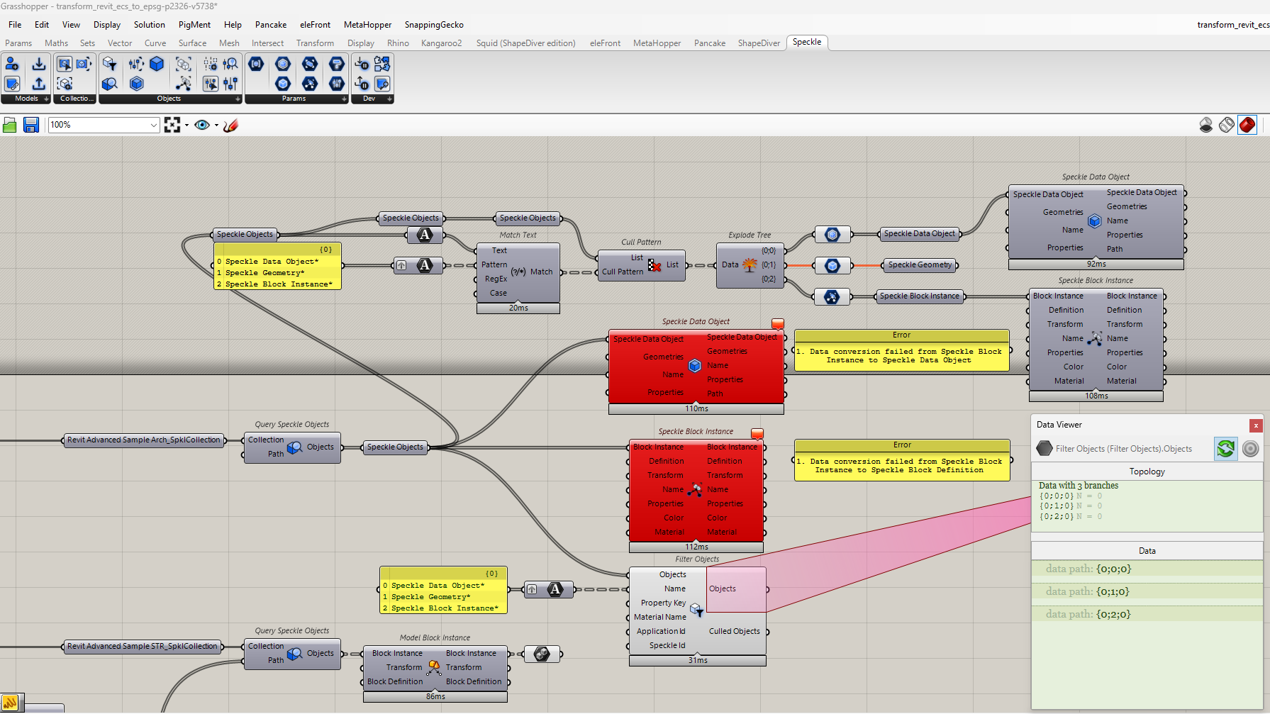 What I’m struggling with is how I should deconstruct the different types of Speckle Objects that come out of the Query Speckle Objects component when there are multiple types of Speckle Objects (Speckle Data Object, Speckle Block Instance) in that collection: